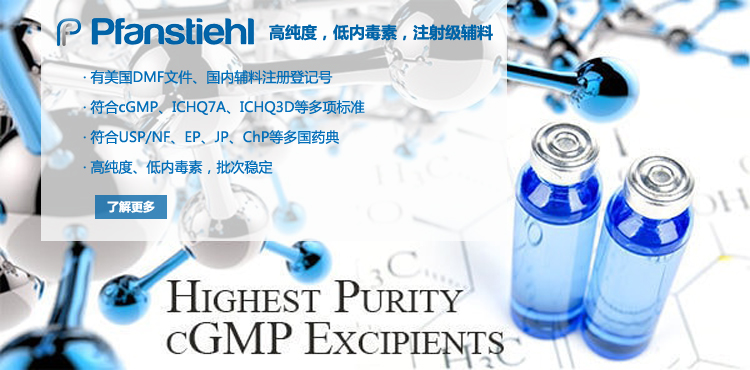 “熱烈祝賀Pfanstiehl的注射級甘氨酸Glycine(G-140)喜獲CDE登記號F20250000403, 這是Pfanstiehl產品獲得的第18個CDE登記號!”甘氨酸在醫藥輔料制劑中應用廣泛,, 可作為緩沖劑,增溶劑,穩定劑等,具有諸多優勢。Pfanstiehl秉承一貫高品質理念,為滿足全球生物制藥行業對于高品質甘氨酸的需求,隆重推出的注射級甘氨酸Glycine (G-140), 具有超高純度,超低內毒素,超低金屬殘留的特點,單獨檢測29種金屬離子,并且新增DNA,RNA,DNA酶,RNA酶和脂肪酶,亞硝酸鹽等多項質量指標的檢測,符合多國藥典規定(USP, EP, BP, JPE, ChP),可用于生物治療性藥物和疫苗的生產。產品信息:· 產品名稱:Glycine, High Purity, Low Endotoxin, Low Metals, USP, EP, BP, JPE, ChP (G-140)· 中文名稱:甘氨酸· 分子式:C2H5NO2· 分子量:75.07 g / mol· CAS號:56-40-6· 產品貨號:G-140產品特點: · 超高純度,超低內毒素,超低微生物含量,超低金屬雜質殘留· 質量指標新增DNA,RNA,DNA酶,RNA酶,脂肪酶和亞硝酸鹽檢測· 符合多國藥典:USP, EP, BP, JPE, ChP· 符合ICH Q3D標準· 符合GMP標準· 已獲DMF和CDE登記號 產品應用:· 緩沖劑· 穩定劑· 增溶劑如果您對Pfanstiehl注射級別Glycine G-140感興趣,歡迎聯系Pfanstiehl 中國區代理商北京西美杰科技有限公司獲得如下詳細的產品概況說明文件和測試樣品。Pfanstiehl Inc.最新產品系列如下,歡迎聯系北京西美杰科技有限公司獲取100g裝免費樣品。北京西美杰科技有限公司為Pfanstiehl中國代理,為客戶提供完善的技術支持與售后服務。歡迎撥打西美杰客服電話400-050-4006或者登陸網站www_xmjsci_com.fcbwzg.mobi了解更多信息。 更多>西美杰介紹
